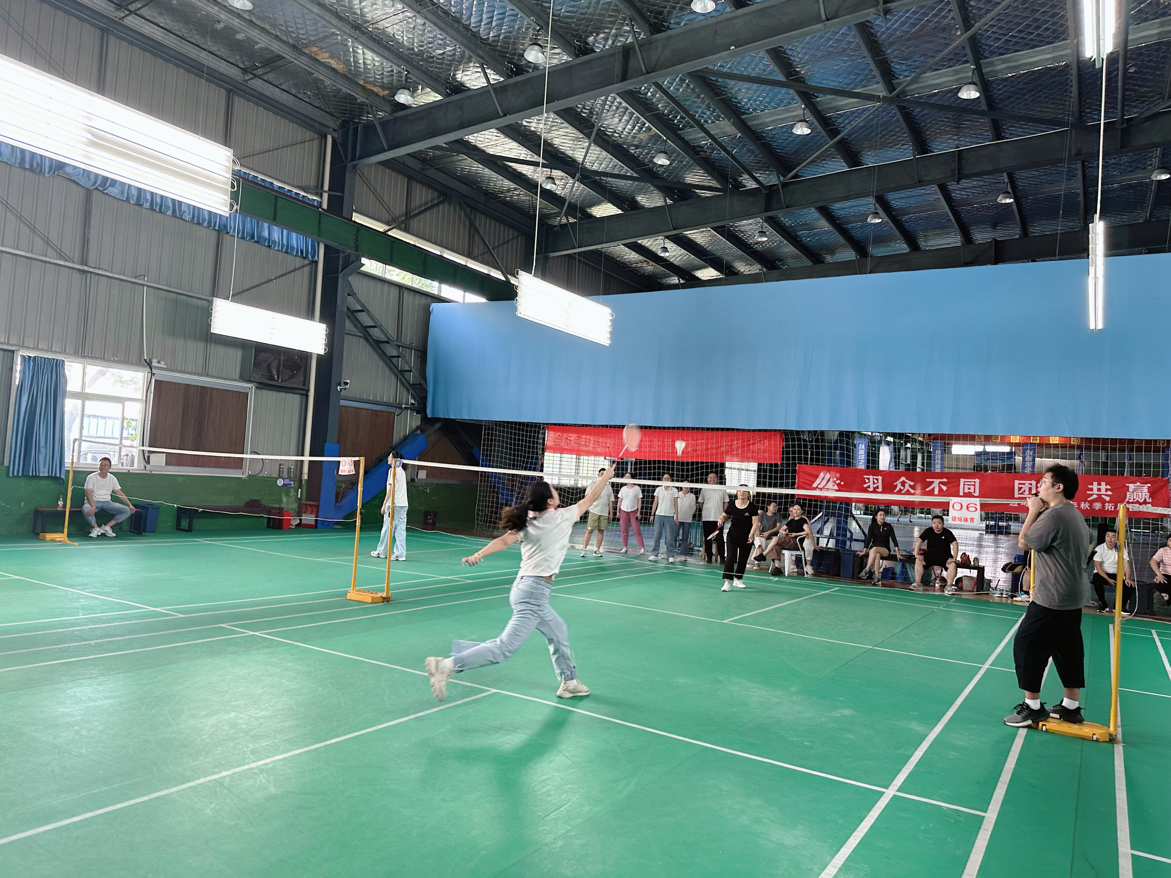 本次比赛充分体现了“羽众不同”的特色。选手们风格各异,有的以力量见长,每一次击球都势大力沉;有的则以技巧取胜,巧妙的落点和灵活的步伐让人赞叹不已。但无论风格如何,他们都有一个共同的目标——为团队荣誉而战。在比赛中,队员们相互配合、默契十足,充分展现了“团队共赢”的理念。他们在赛场上互相鼓励、互相支持,为了每一个得分共同拼搏,将团队的力量发挥到了极致。