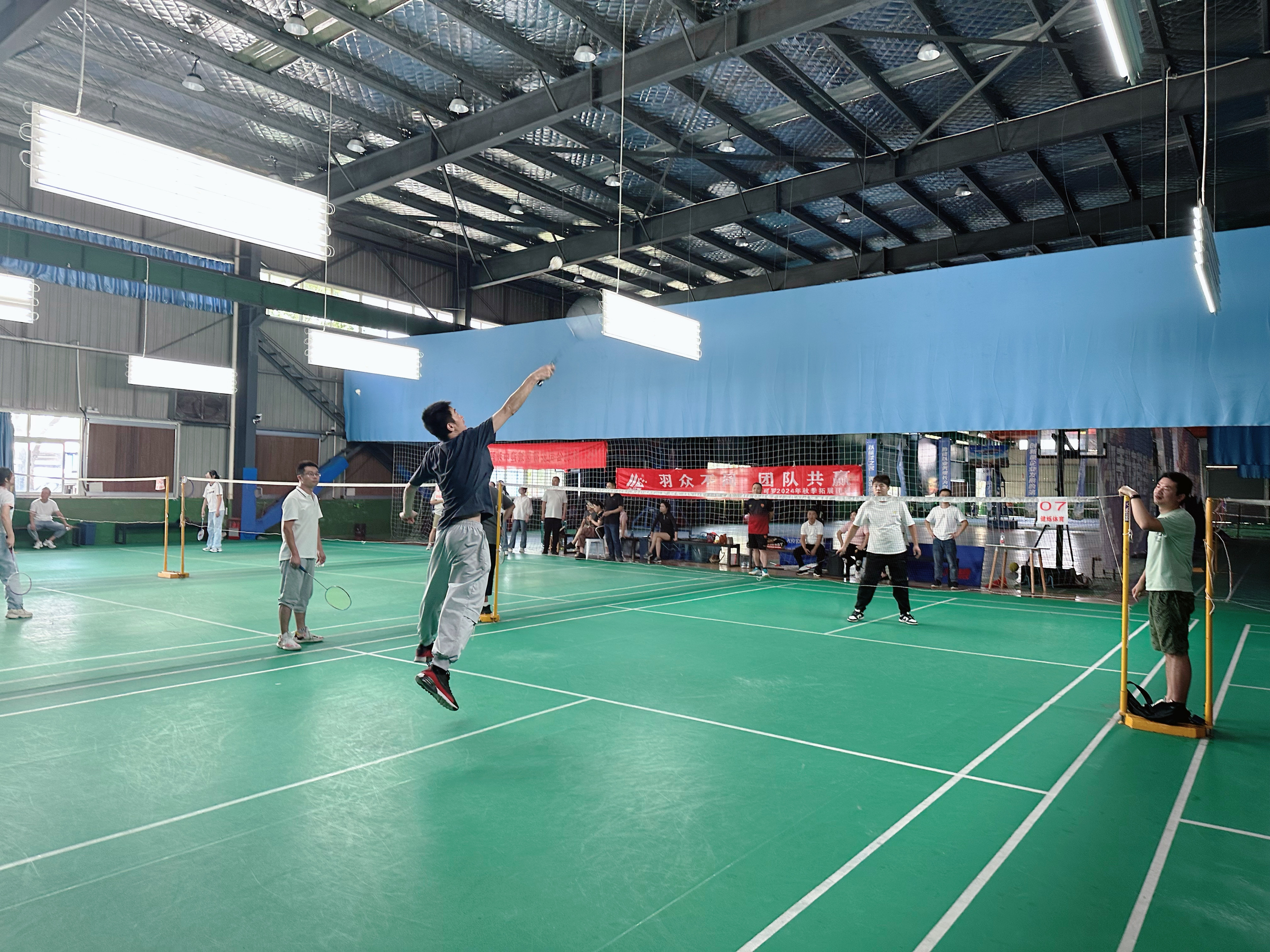 本次比赛充分体现了“羽众不同”的特色。选手们风格各异,有的以力量见长,每一次击球都势大力沉;有的则以技巧取胜,巧妙的落点和灵活的步伐让人赞叹不已。但无论风格如何,他们都有一个共同的目标——为团队荣誉而战。在比赛中,队员们相互配合、默契十足,充分展现了“团队共赢”的理念。他们在赛场上互相鼓励、互相支持,为了每一个得分共同拼搏,将团队的力量发挥到了极致。